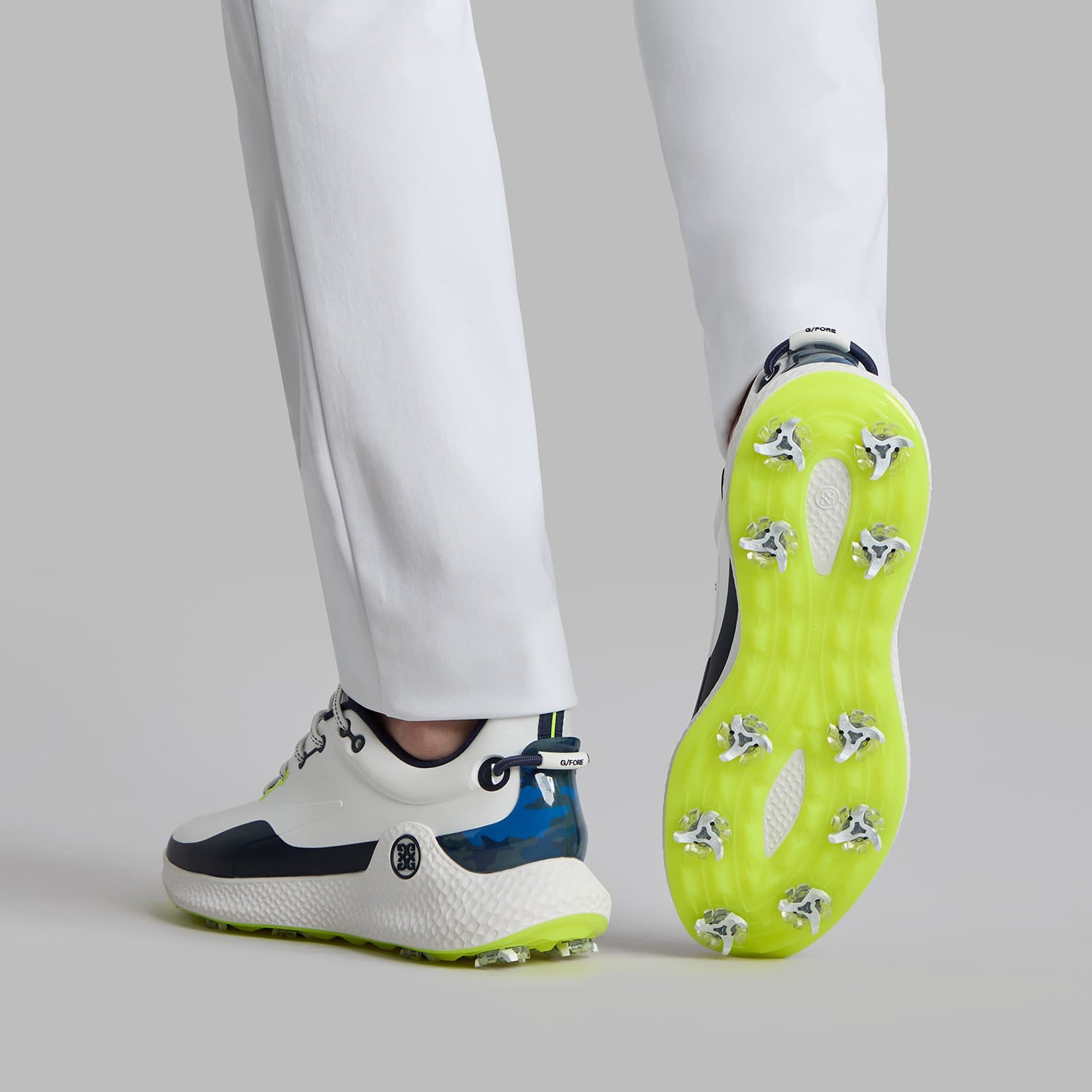 MADE WITH PREMIUM WATERPROOF T.P.U. G/LOCK TECHNOLOGY CLEATS WITH REPLACEABLE TOUR FLEX PRO® SOFTSPIKES REMOVABLE & WASHABLE MASSAGING INSOLES LOCKED IN STABILITY WITH EXTERNAL HEEL COUNTER RESPONSIVE AUXETIC LATTICE MIDSOLE & SIDEWALL FULLY PADDED MESH INTERIOR LINING ODOR INHIBITING TRIPLE DENSITY FOAM CUSHION FOOTBED