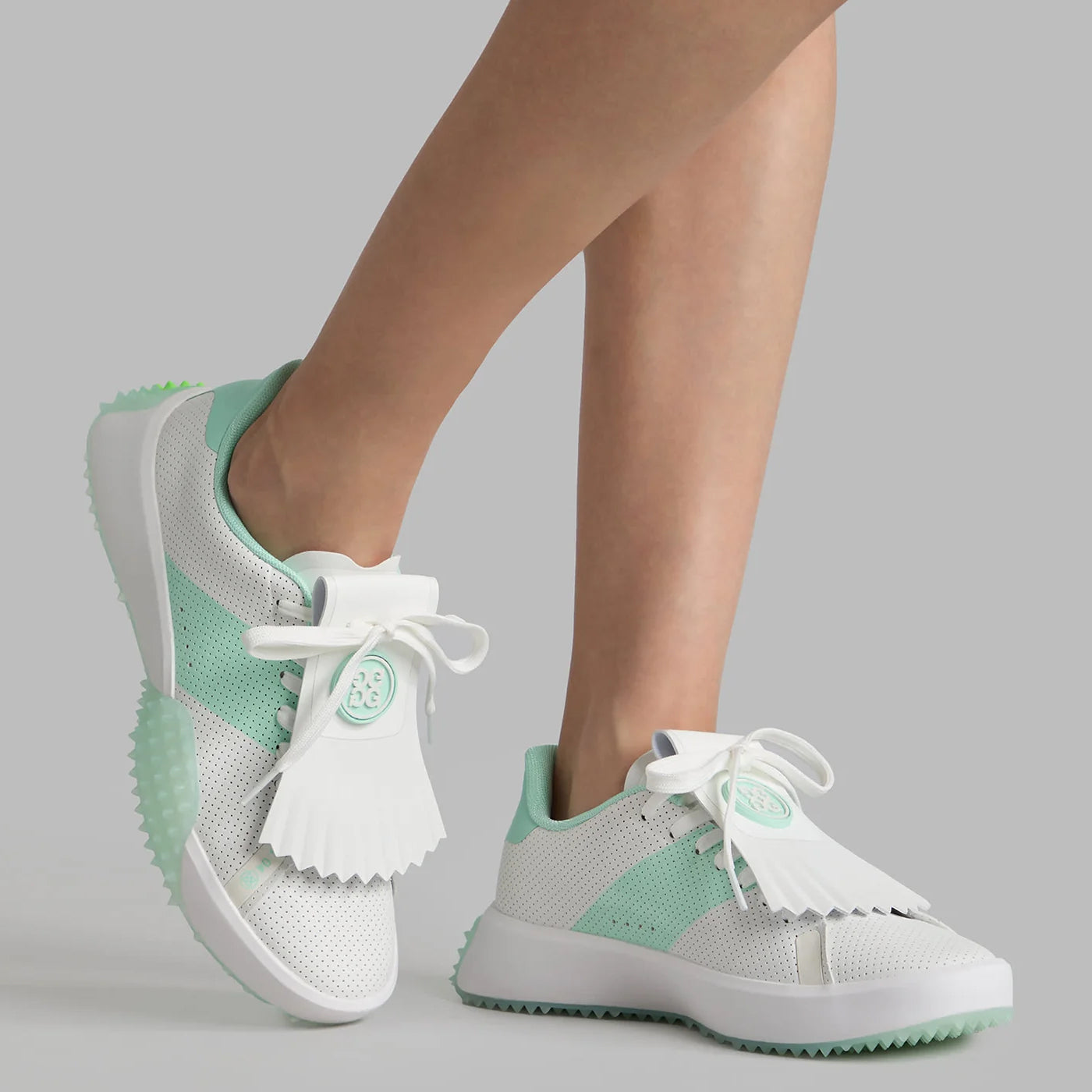 G/Fore Women's G.112 Perforated Leather Kiltie Golf Shoes - Snow/Menthol