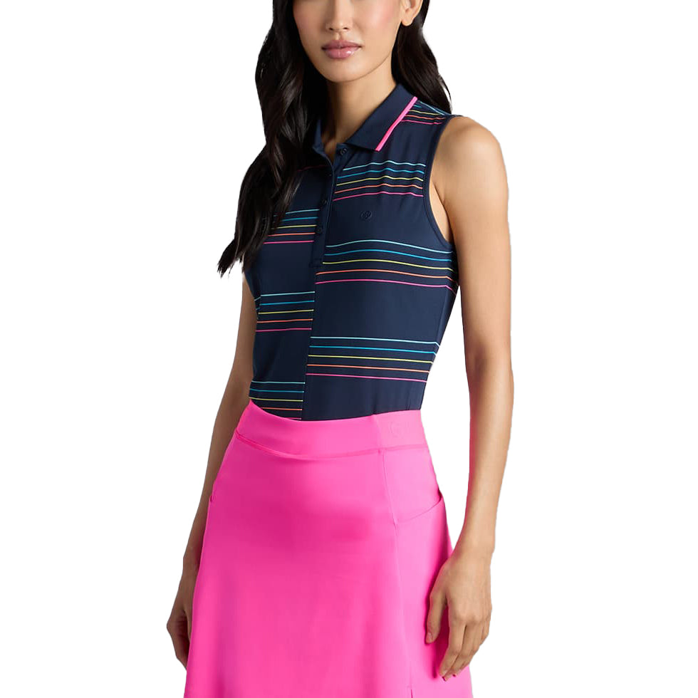 G/Fore Women's Split Stripe Tech Pique Sleeveless Golf Polo Shirt - Twilight