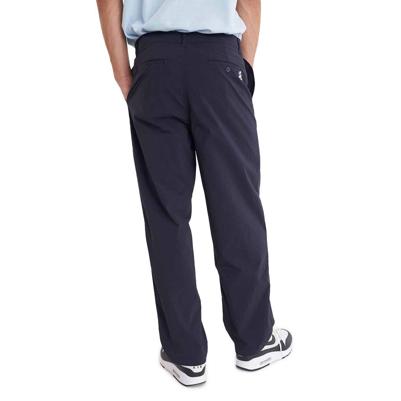 Heres what you should know: Performance Fairway Pants gives you the flex you need with stretch fabric, 96% Nylon 4% Spandex -it’s a relaxed fit with belt loops to keep you on the right side of the club & a water resistant coating that allows water to bead off
