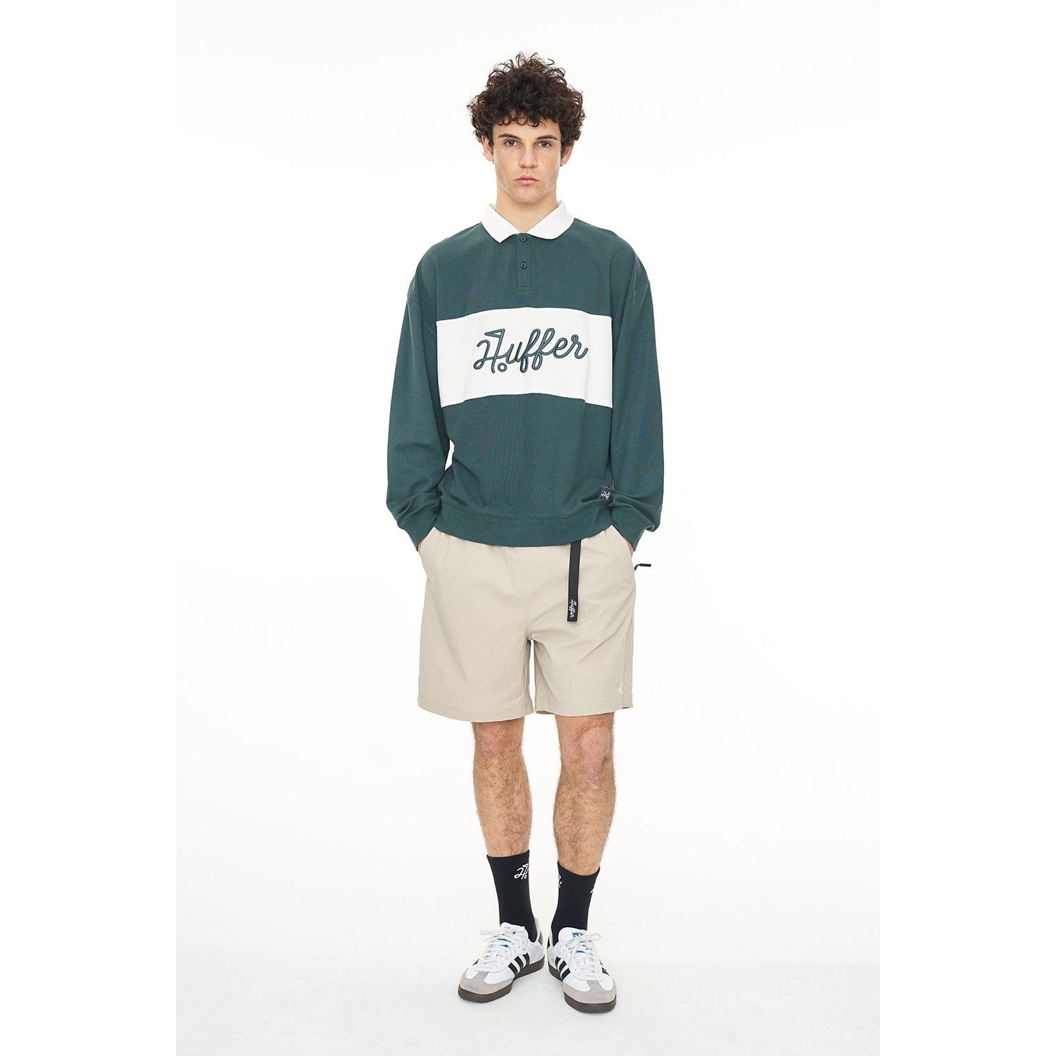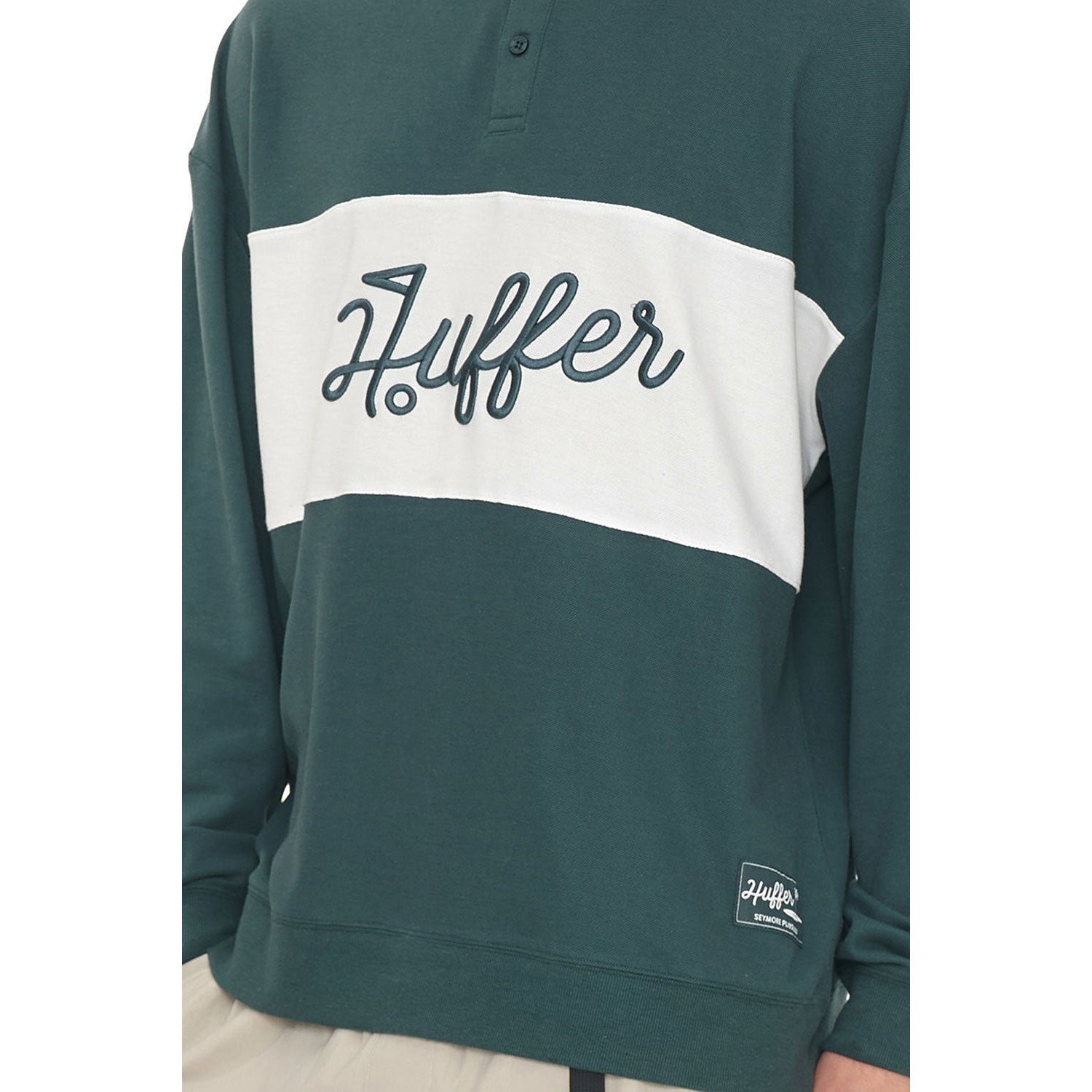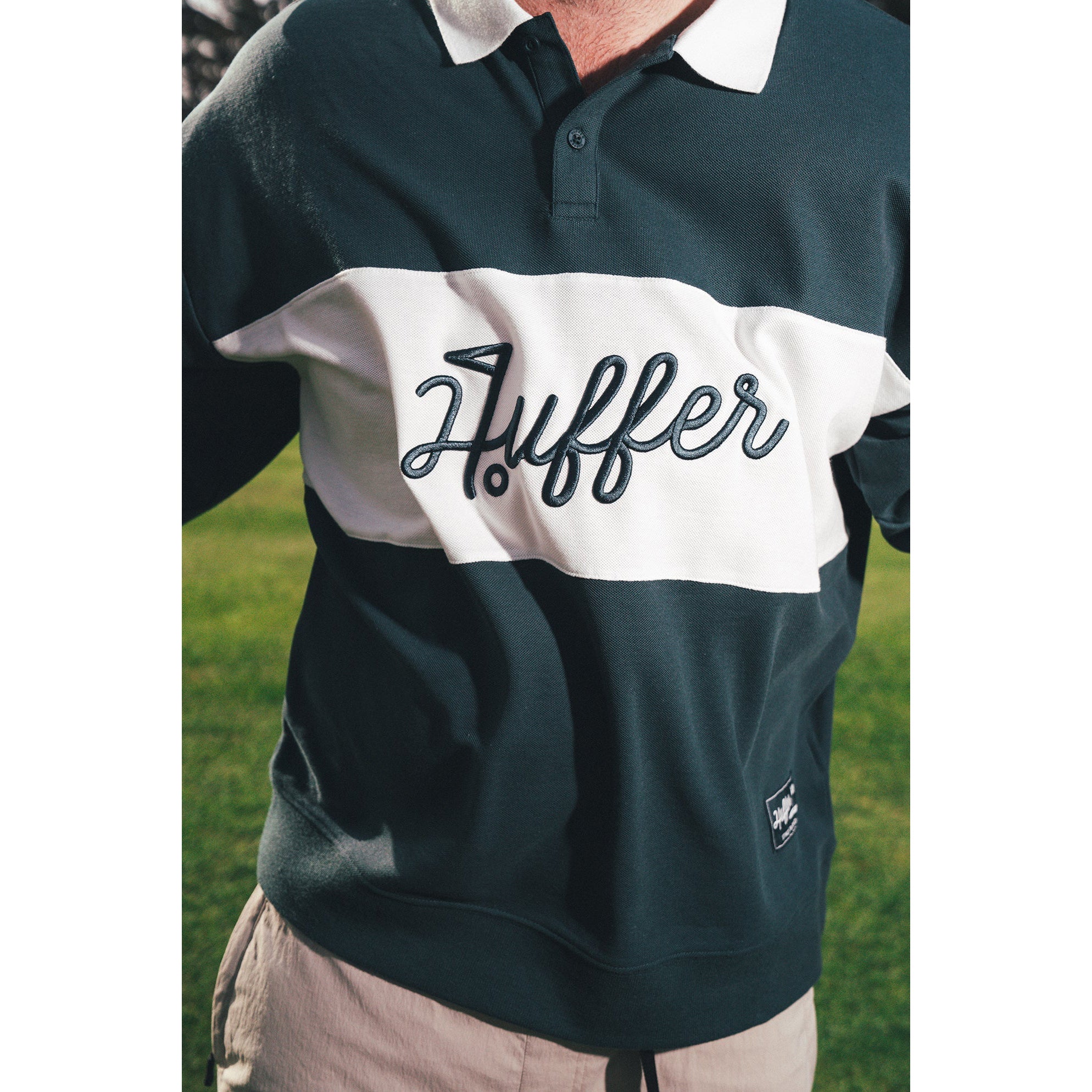Here’s what you should know: 245gsm 60% Cotton 40% Polyester Pique, a Boxy streetwear fit with bold Huffer crest embroidery - brining the signature Huffer energy to the course.