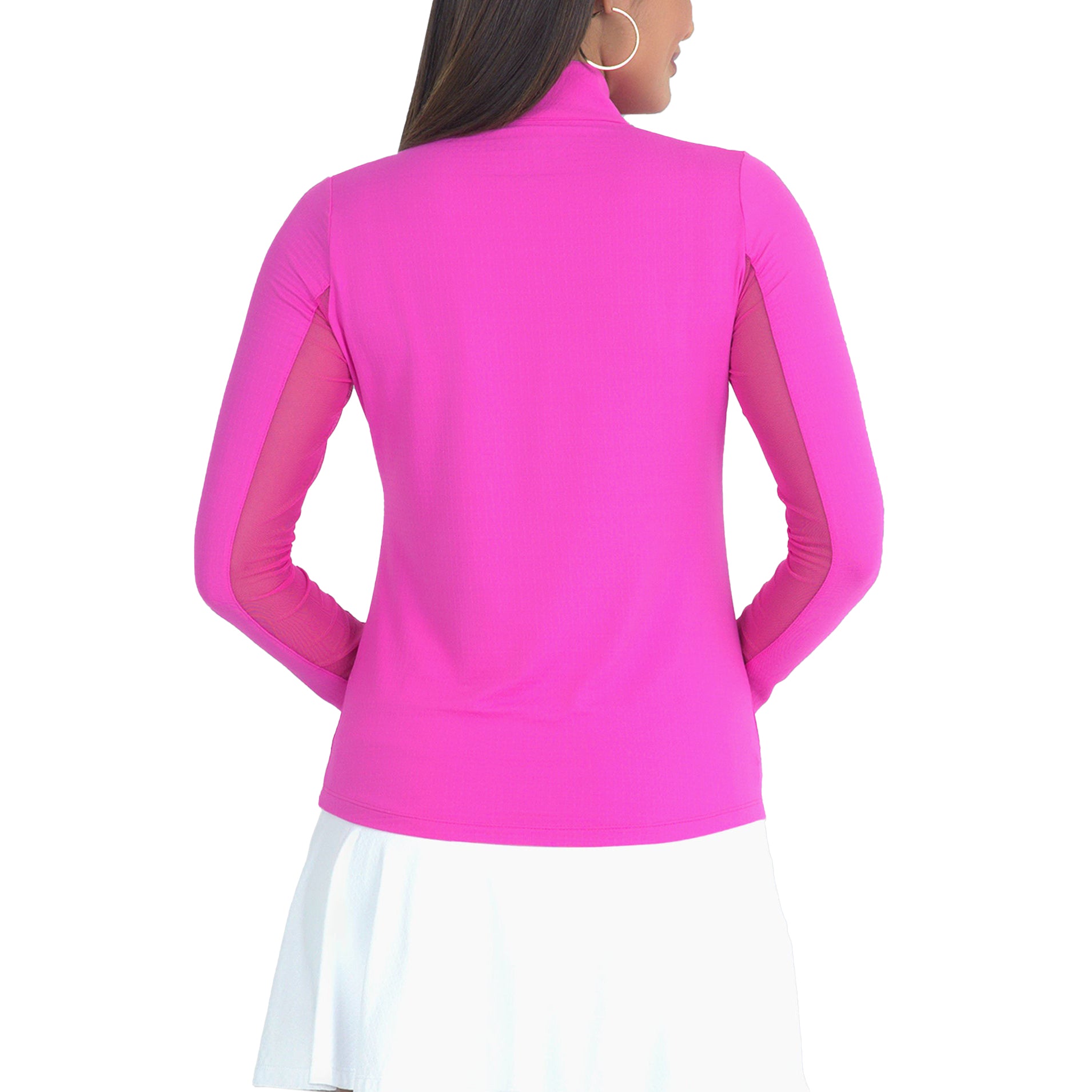 IBKUL Women's Solid Long Sleeve Zip Mock Neck Shirt - Hot Pink