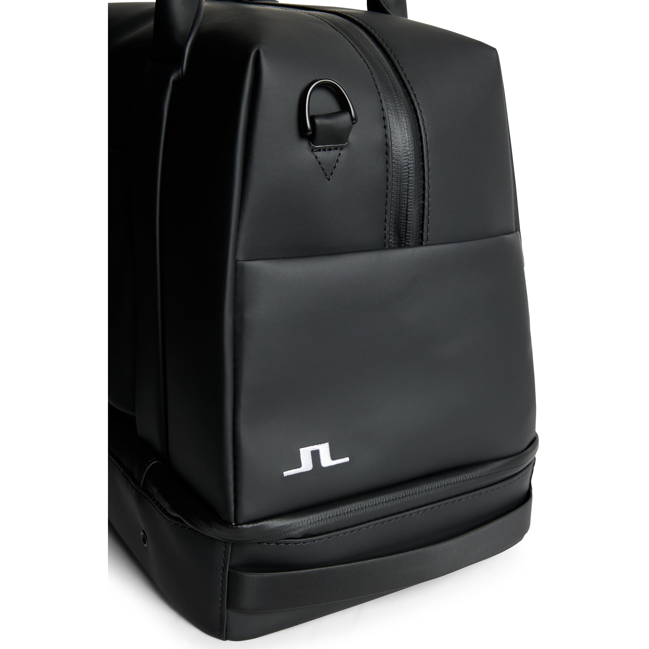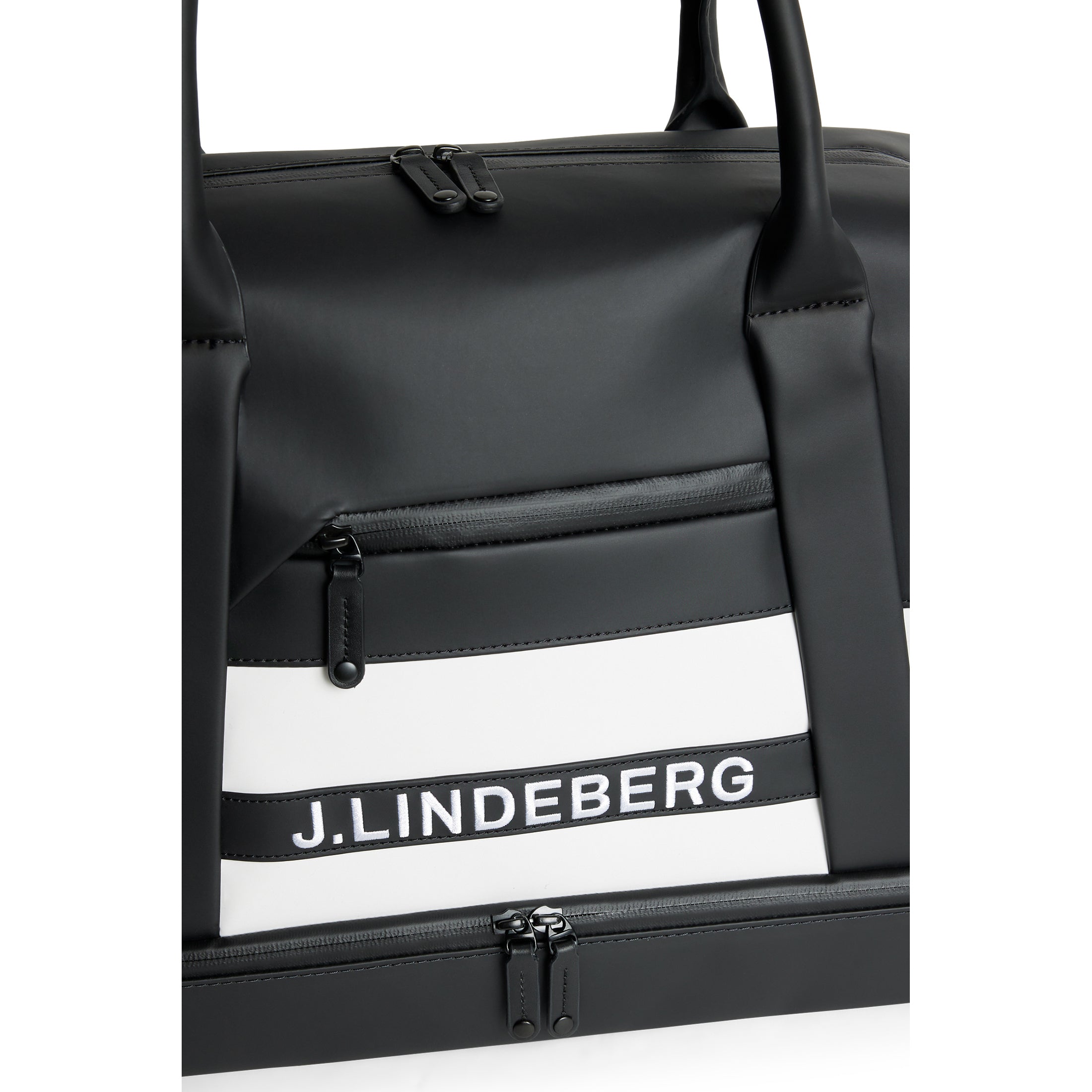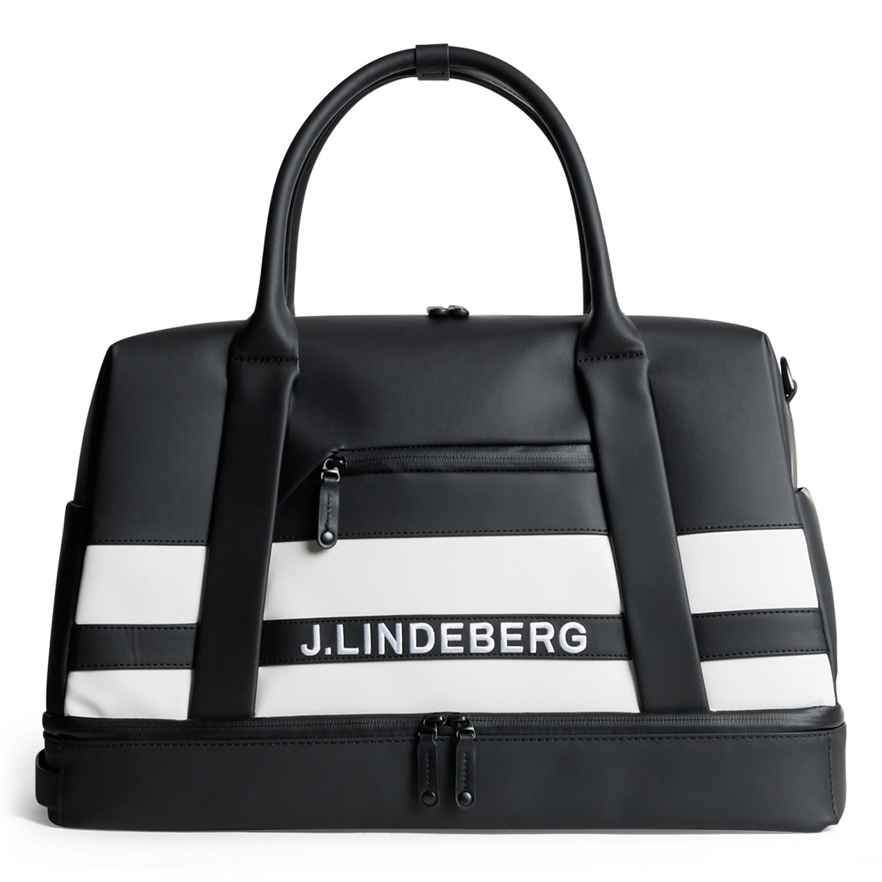 Designed with a spacious main compartment and sturdy construction, it features two vented sections for added breathability and a water-resistant zipper to protect your belongings. A zippered lower compartment provides quick-access storage, perfect for shoes or gear. Embroidered J.Lindeberg branding and Bridge logos on both sides complete the look with signature refinement.