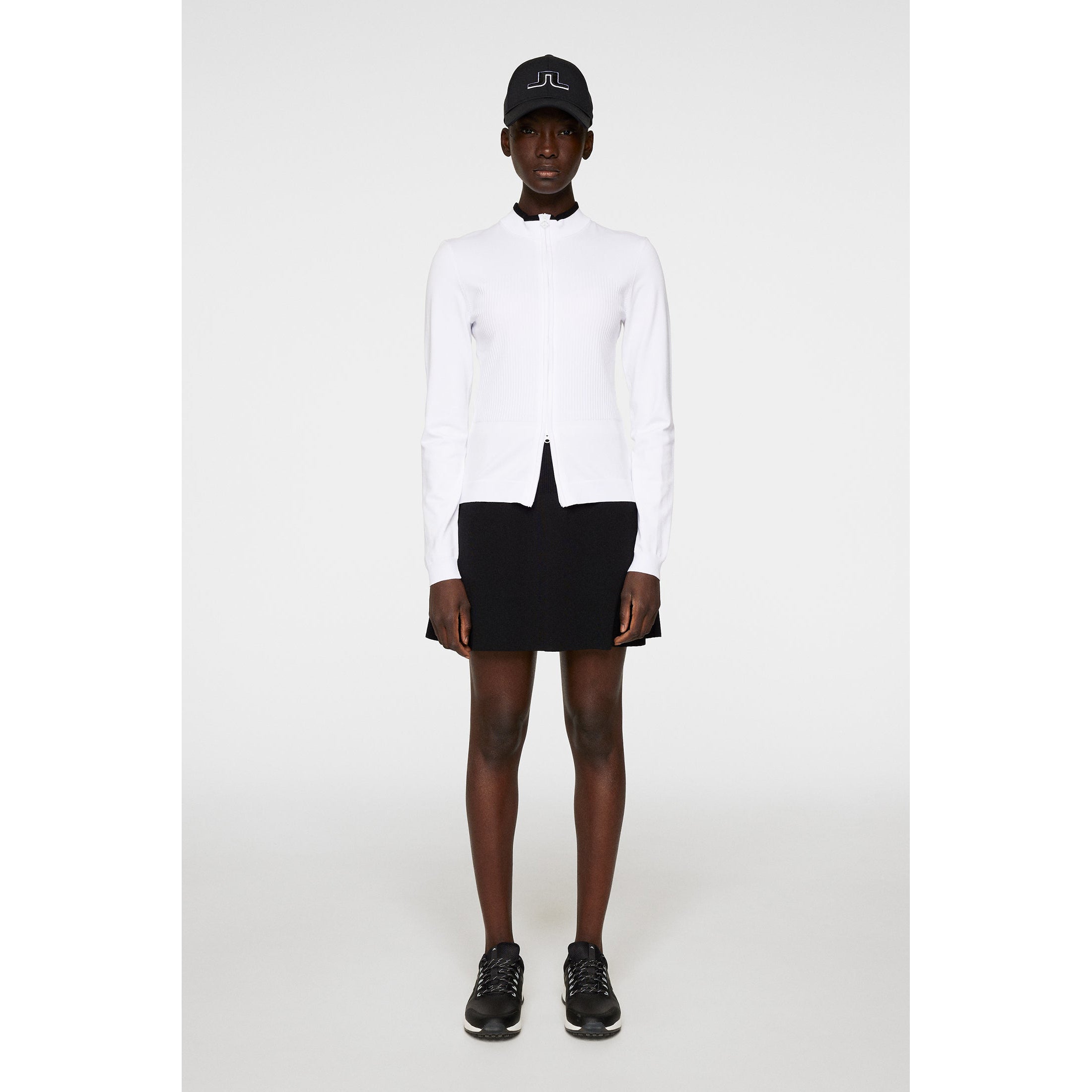 Lightweight & Soft: Offers ultimate comfort without compromising on performance, perfect for all-day wear. Stretchy Rib Panels: Designed to enhance flexibility and movement, providing a comfortable and secure fit. 12-Gauge Yarn: Provides durability while maintaining a soft, breathable feel. Bridge Embroidery at Back: A stylish design element that adds a touch of elegance to the sporty look. Fully Fashioned Details: Carefully crafted for a tailored, high-quality finish. Two-Way Zipper: Offers adjustable ventilation for personalized comfort.
