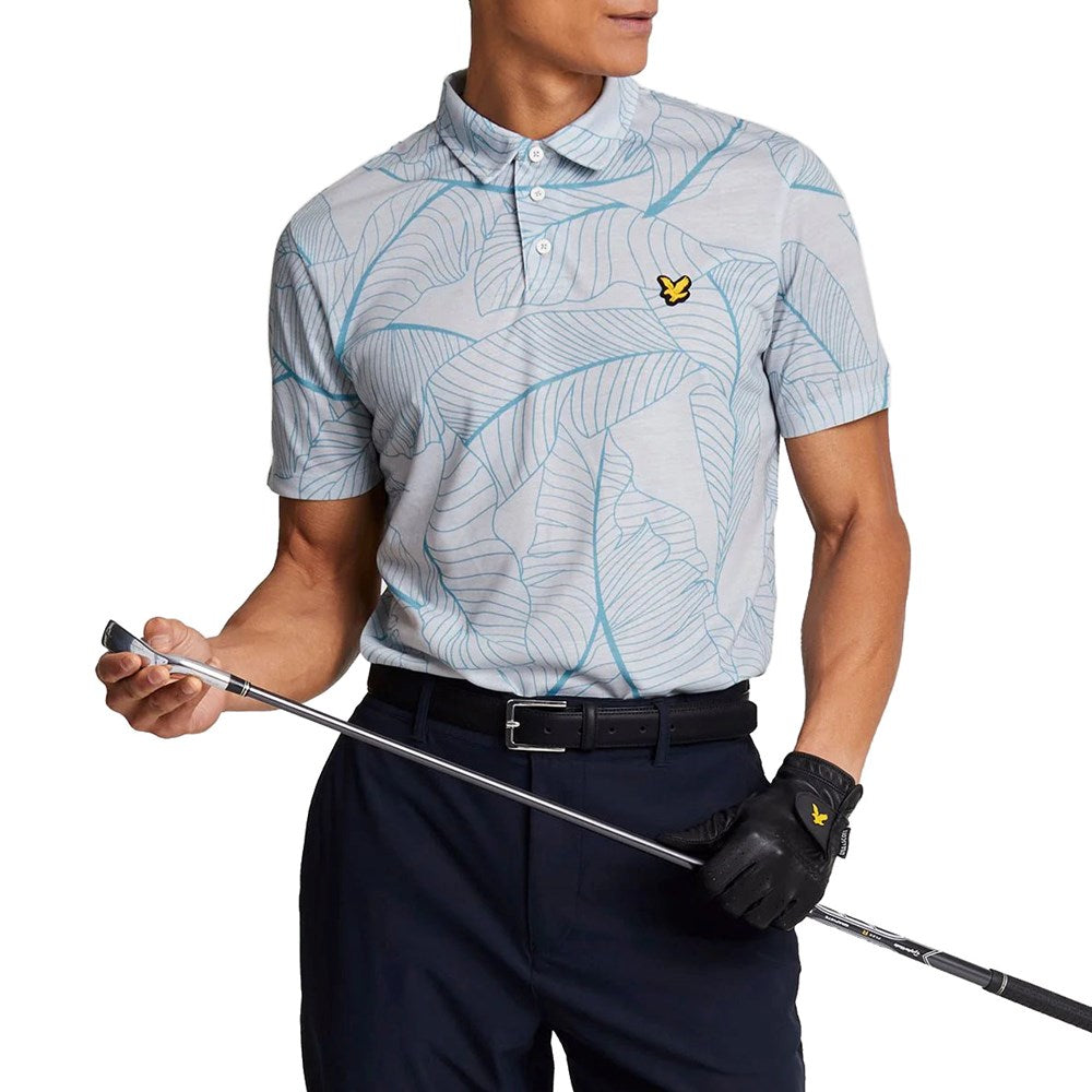 Elevate your golf wardrobe with the Lyle & Scott Floral Polo Golf Shirt in Pebbel. Featuring a custom-designed leaf print, this polo brings a modern twist to classic golf attire. Designed with breathable, sweat-wicking fabric, it keeps you cool and comfortable throughout your game.
