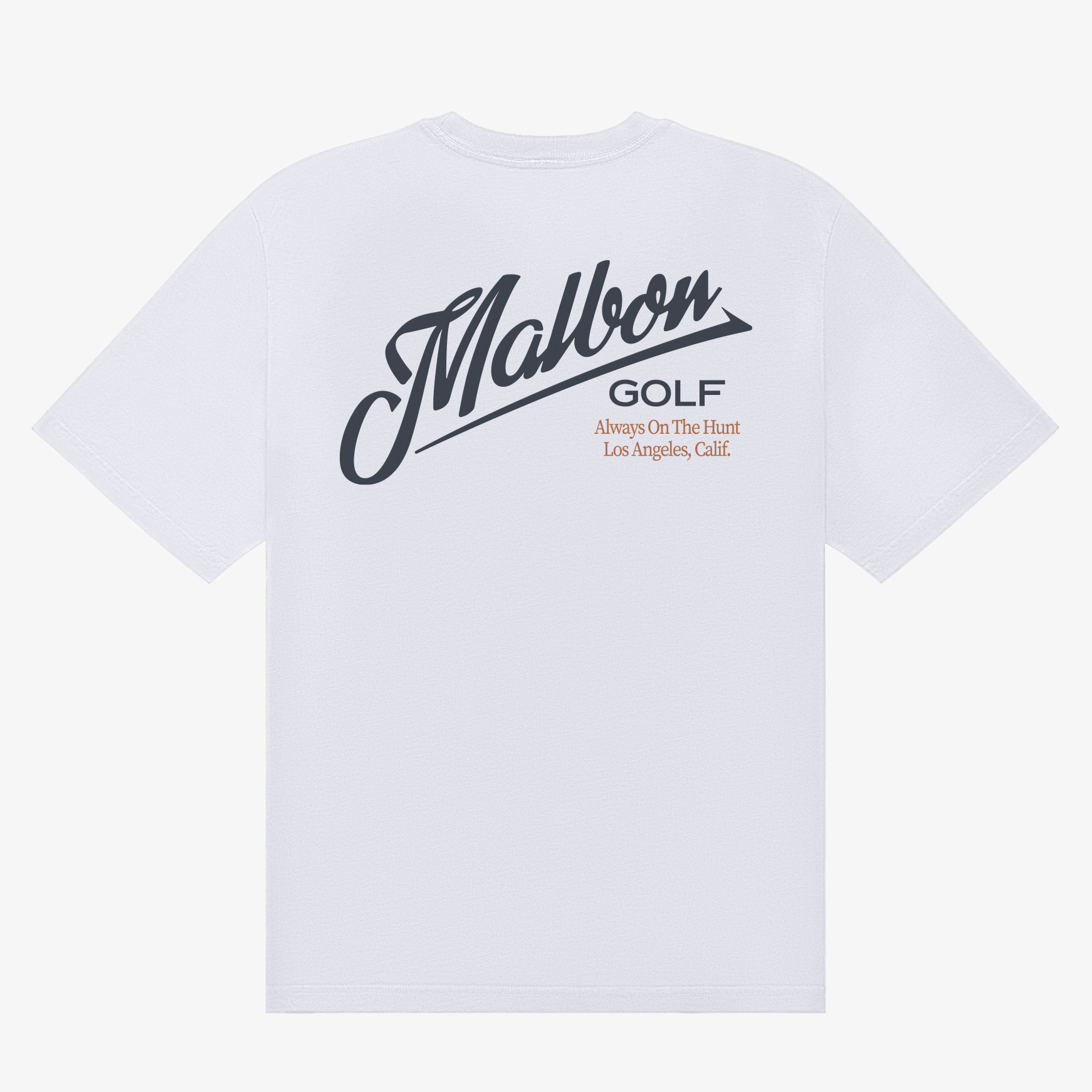 Fabrication: 100% cotton Relaxed fit Printed Malbon Golf logo on left chest Printed Malbon Golf logo across back Woven Malbon flag label on left seam Made in the USA