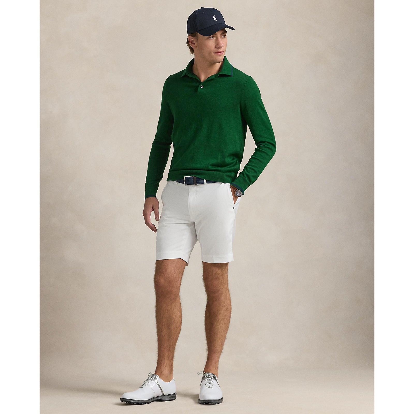 Key Features: -Tailored Fit: Size medium features a 26.75" body length, 17.5" shoulder width, 42" chest, and 25.75" sleeve length (sleeve length increases by 0.5" between sizes). -Refined Design: A rib-knit polo collar with contrast tipping and a three-button placket offers a polished, classic look. -Premium Details: Crafted with genuine mother-of-pearl buttons for an elevated finish. -Comfort & Flexibility: Long sleeves with rib-knit cuffs and hem, both featuring contrast tipping, ensure a sleek yet comfortable fit. -Signature Branding: The embroidered "RLX" logo at the center back neck adds a premium touch. -Performance Fabric Blend: Made from a breathable, moisture-wicking mix of 55% polyester and 45% wool, keeping you warm yet dry. -Easy Care: Machine washable for convenience. -The model is 6'1" (185 cm) and wears a size medium.