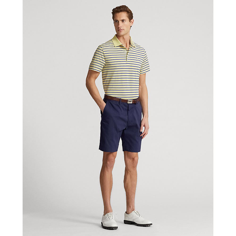 -Tailored through the waist. -Ribbed Polo collar. -Three-button placket. -Short sleeves. -"RLX" logo at the right shoulder. -Even vented hem. -Signature embroidered Pony at the left chest. -Cotton, polyester