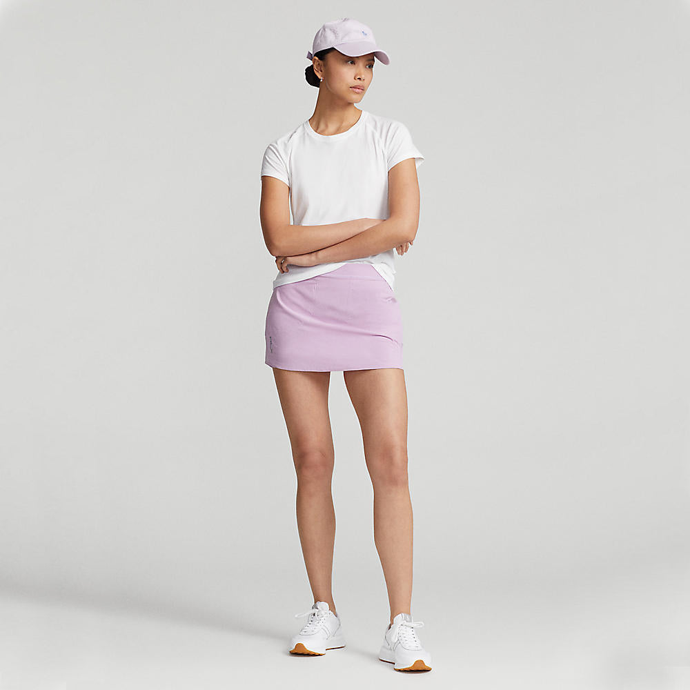 The Aim golf skort is cut from stretch fabric for ease of movement, this skort features moisture-wicking properties and perforated side panels designed to keep you comfortable. Achieve peak performance on the golf course with the RLX Ralph Lauren Women's Aim Golf Skort 15" in Light Mauve. Made from stretch fabric, this skort allows for unrestricted movement while providing moisture-wicking properties to keep you cool and dry. The perforated side panels also add breathability and comfort, making it the perfect choice for any round of golf. Take your game to the next level with this high-quality and practical golf skort.