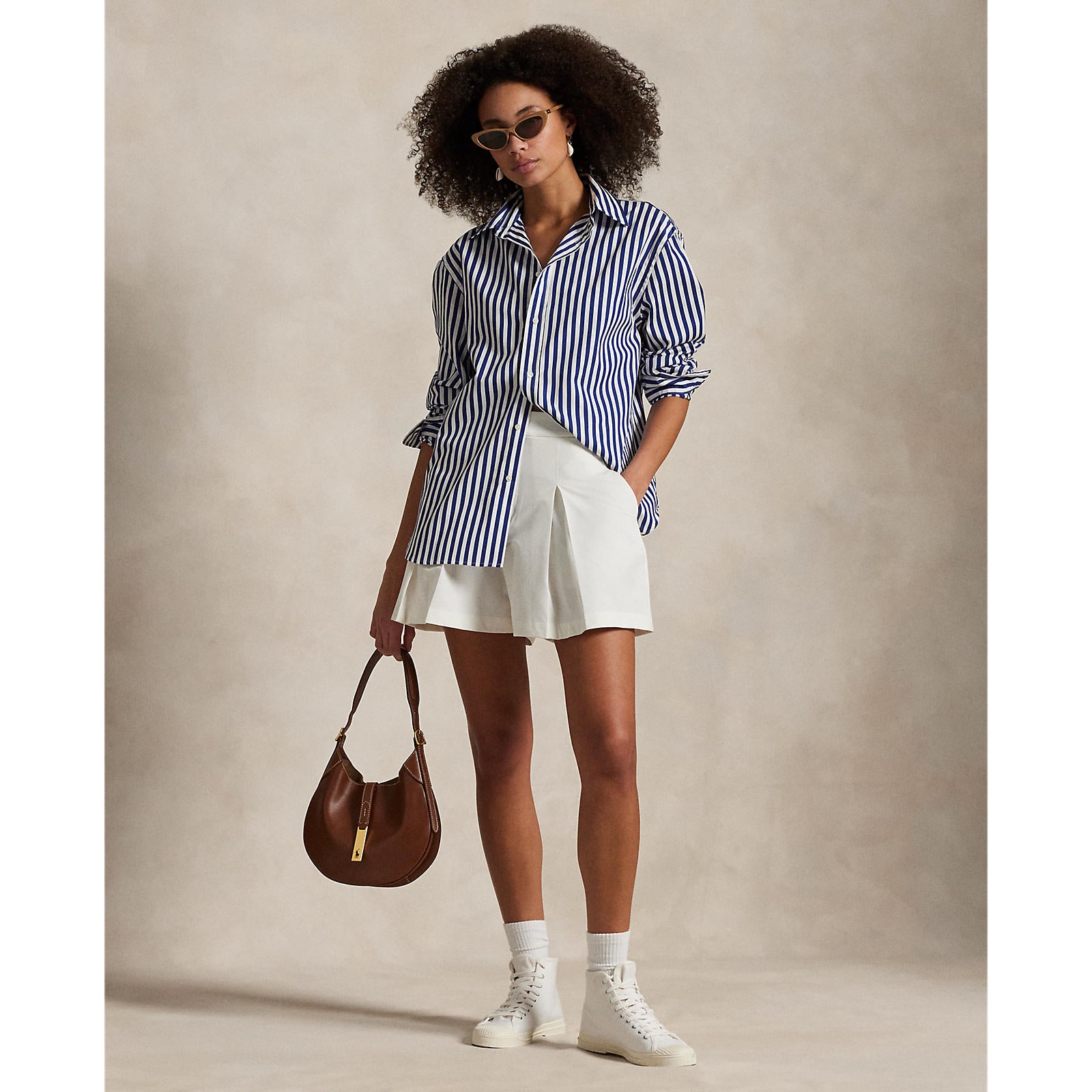 Designed for comfort and clean lines, the RLX Ralph Lauren Women's Double-Faced Wide-Leg Shorts feature box pleats and a soft, structured silhouette. Blending refined tailoring with performance-ready four-way stretch, these shorts are ideal for movement and style.