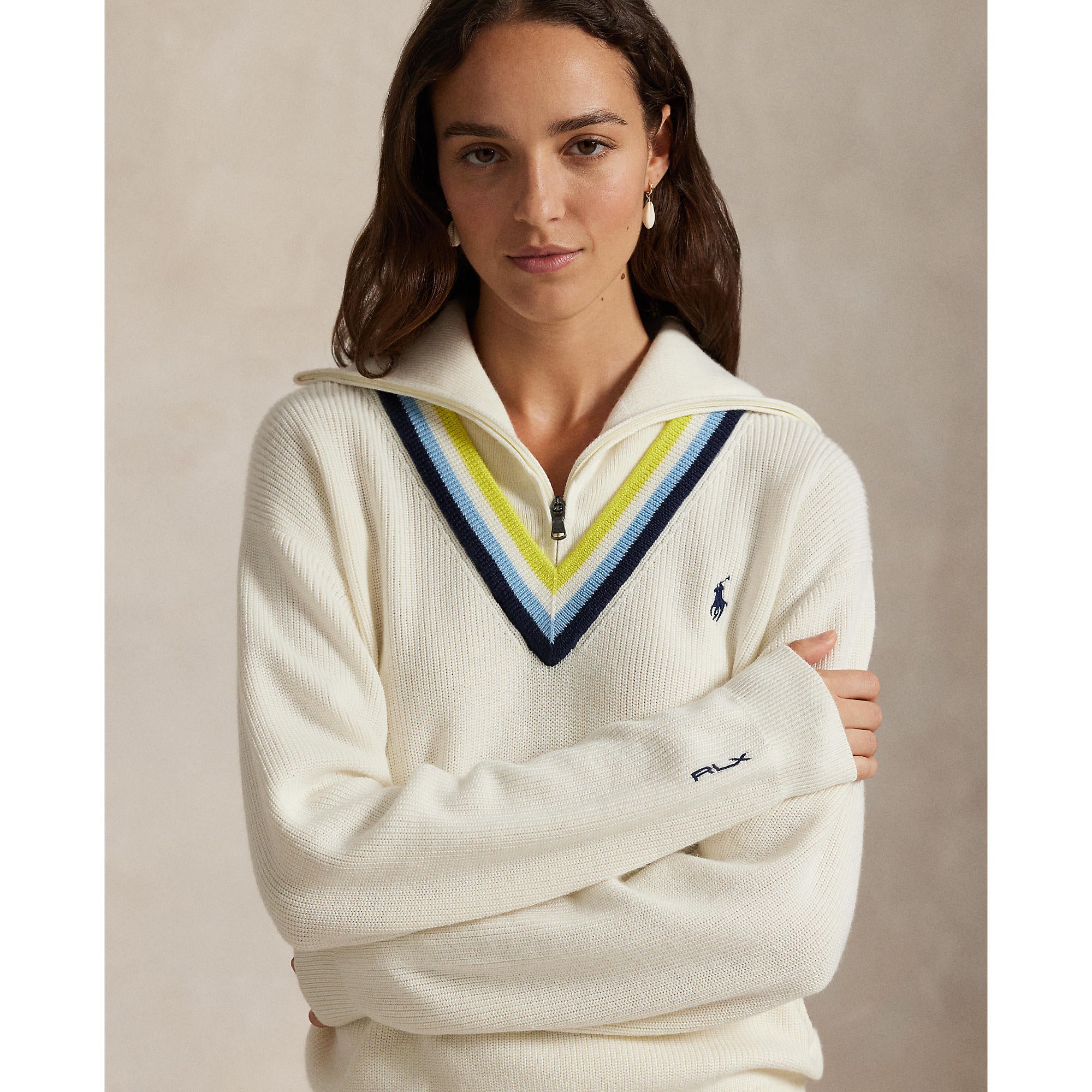 RLX Ralph Lauren Women's Quarter Zip Wool Blend Pullover - Antique White