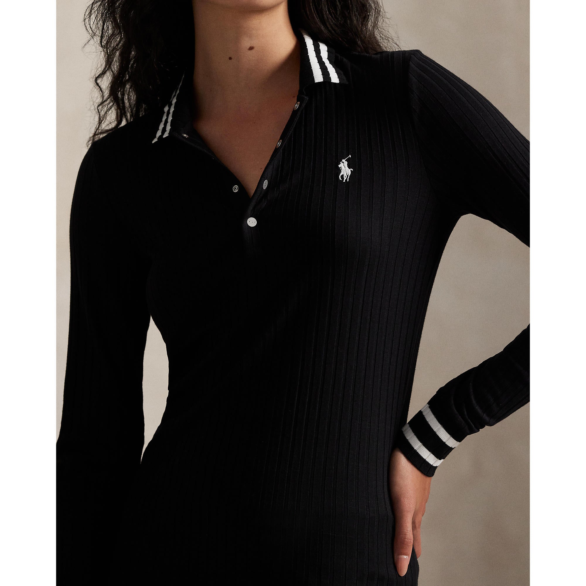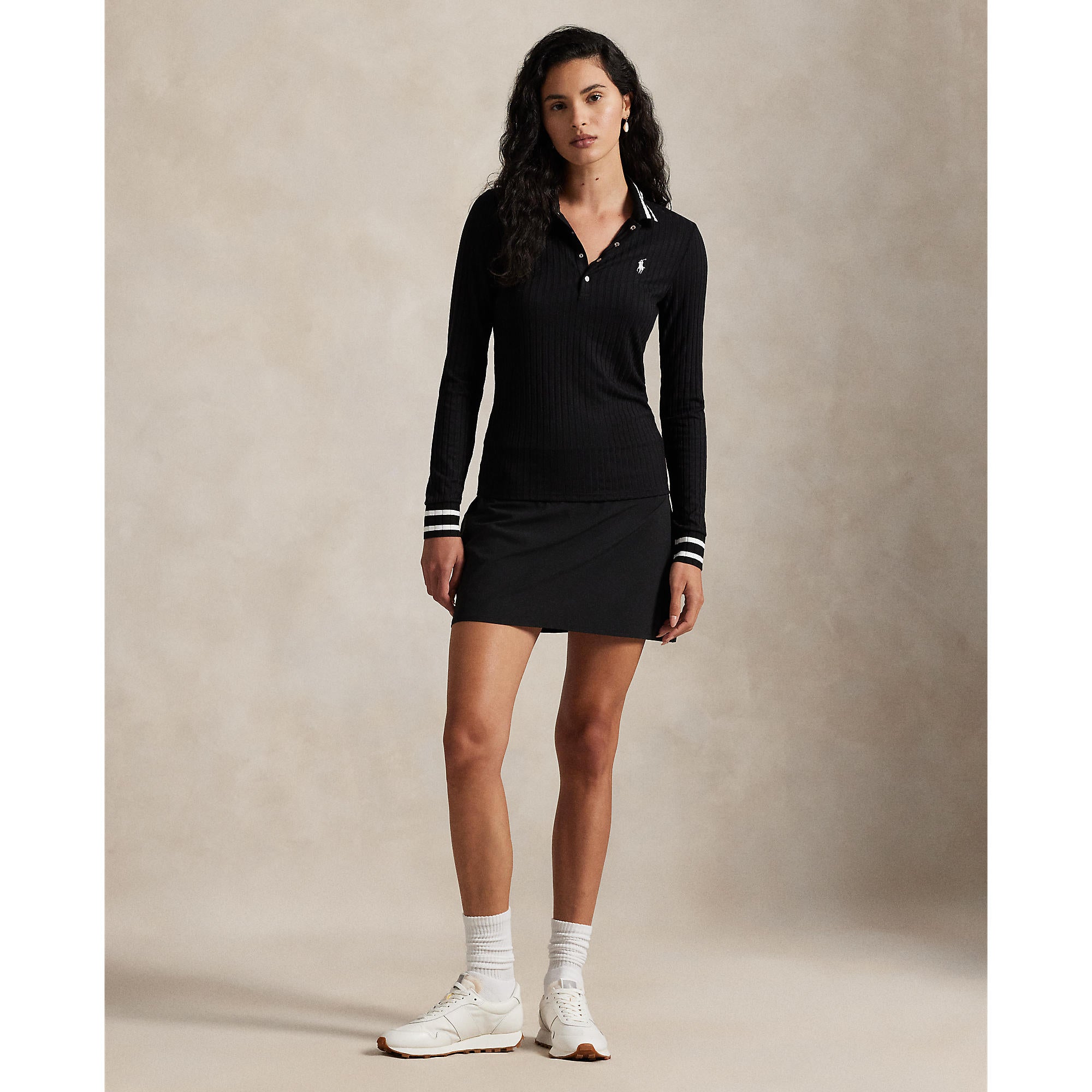 Refined, Modern, and Elegantly Athletic The RLX Ralph Lauren Women’s Long-Sleeve Rib-Knit Golf Polo redefines a timeless classic with a sleek, contemporary twist. Crafted in a slim silhouette from a smooth, rib-knit fabric, this polo offers elevated comfort, flattering stretch, and a modern look designed for performance. Contrast tipping at the collar and cuffs adds a sporty edge, while signature RLX detailing brings the perfect finishing touch.