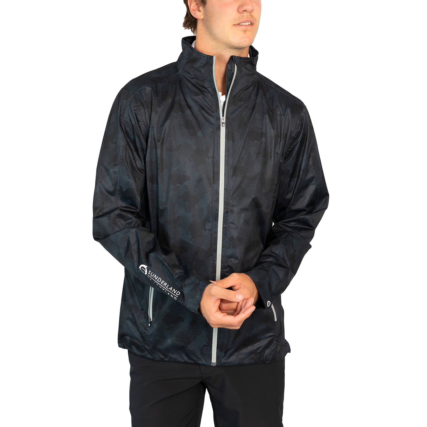 Sunderland Whisperdry Pro-Lite Lightweight Waterproof Golf Jacket - Black Camo/Silver