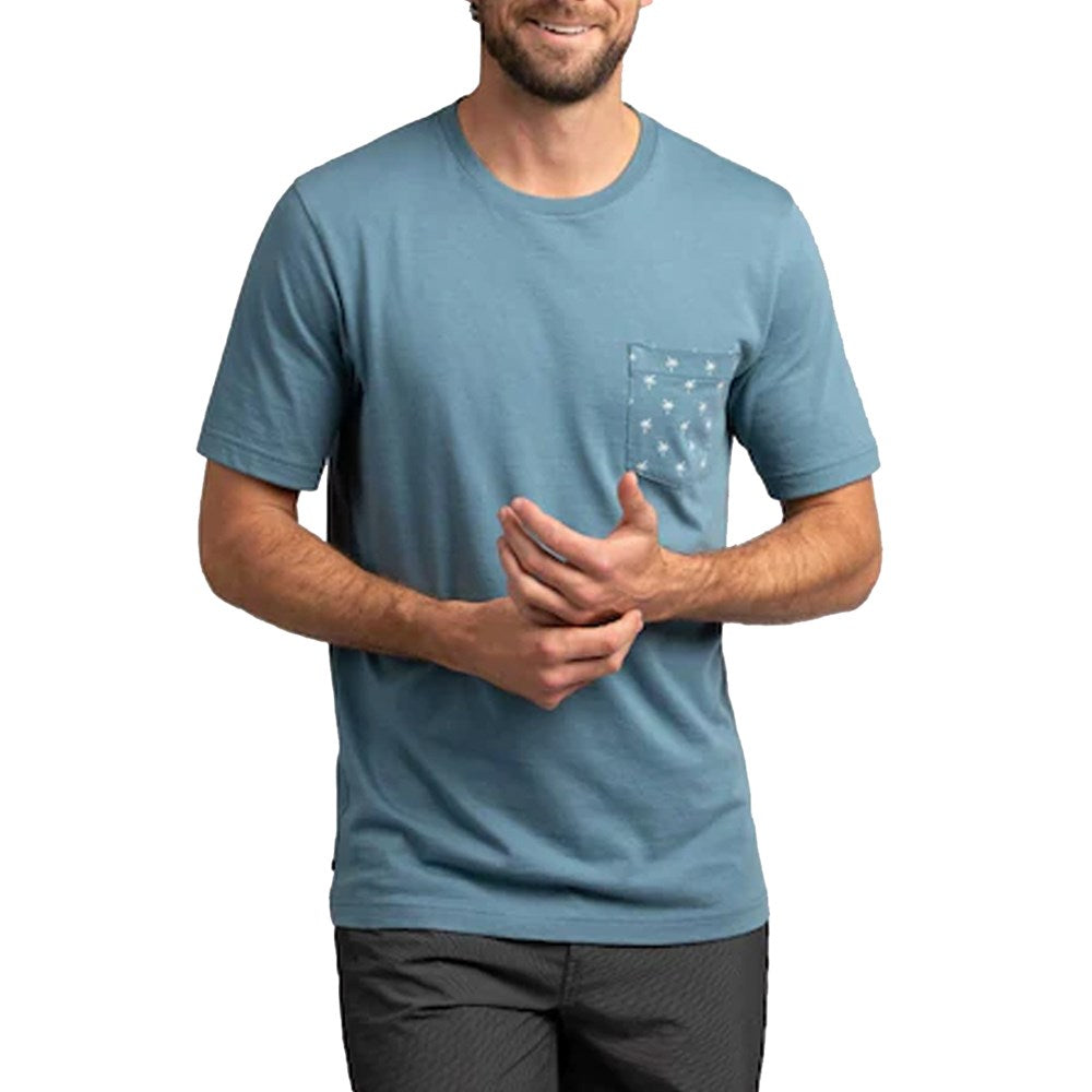 Contrast chest pocket with palm tree pattern