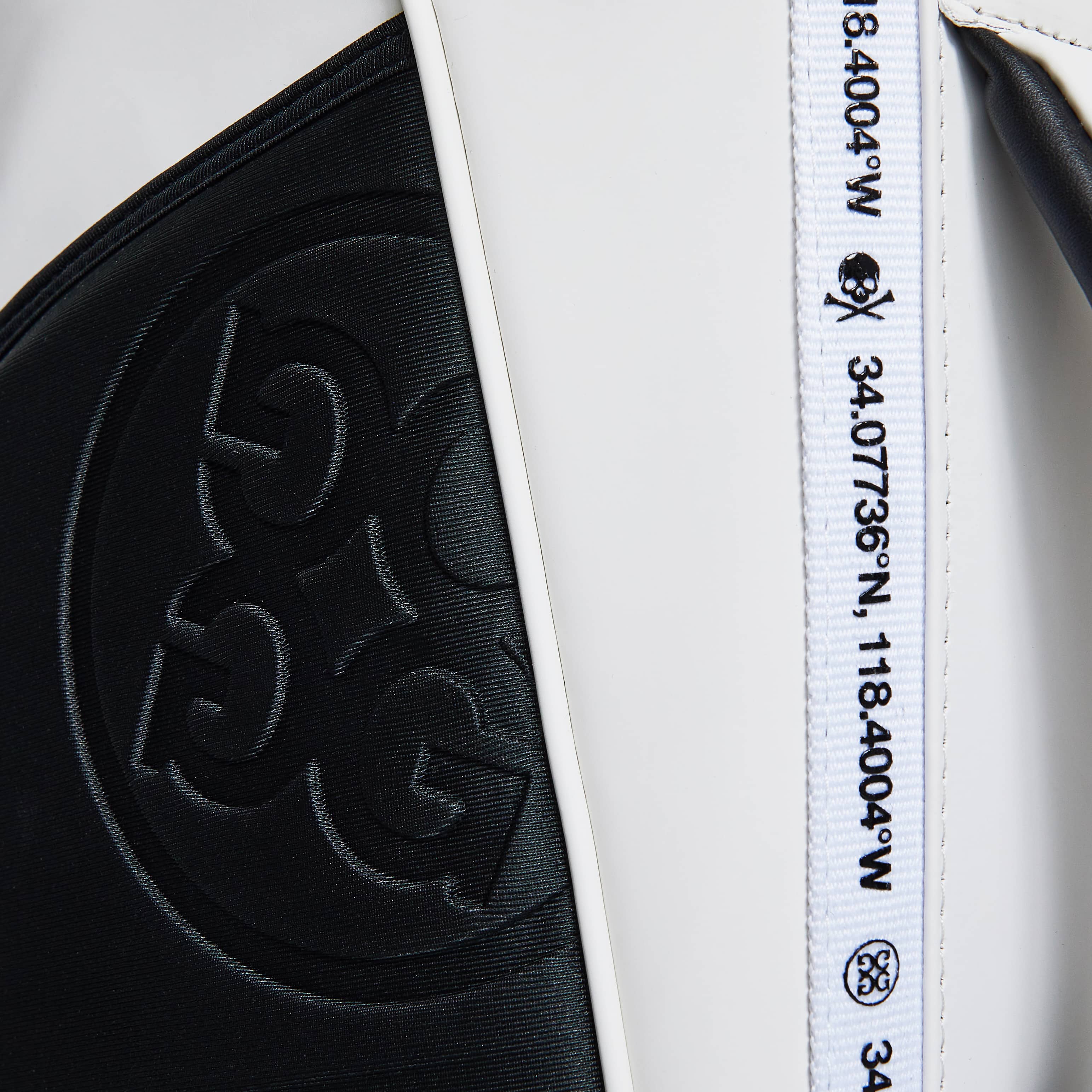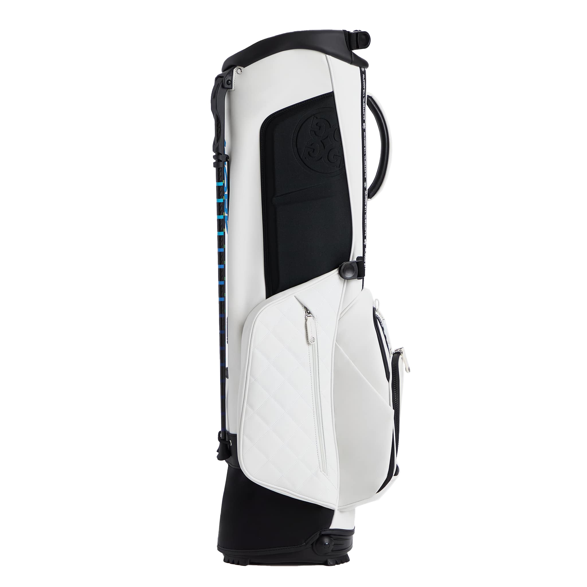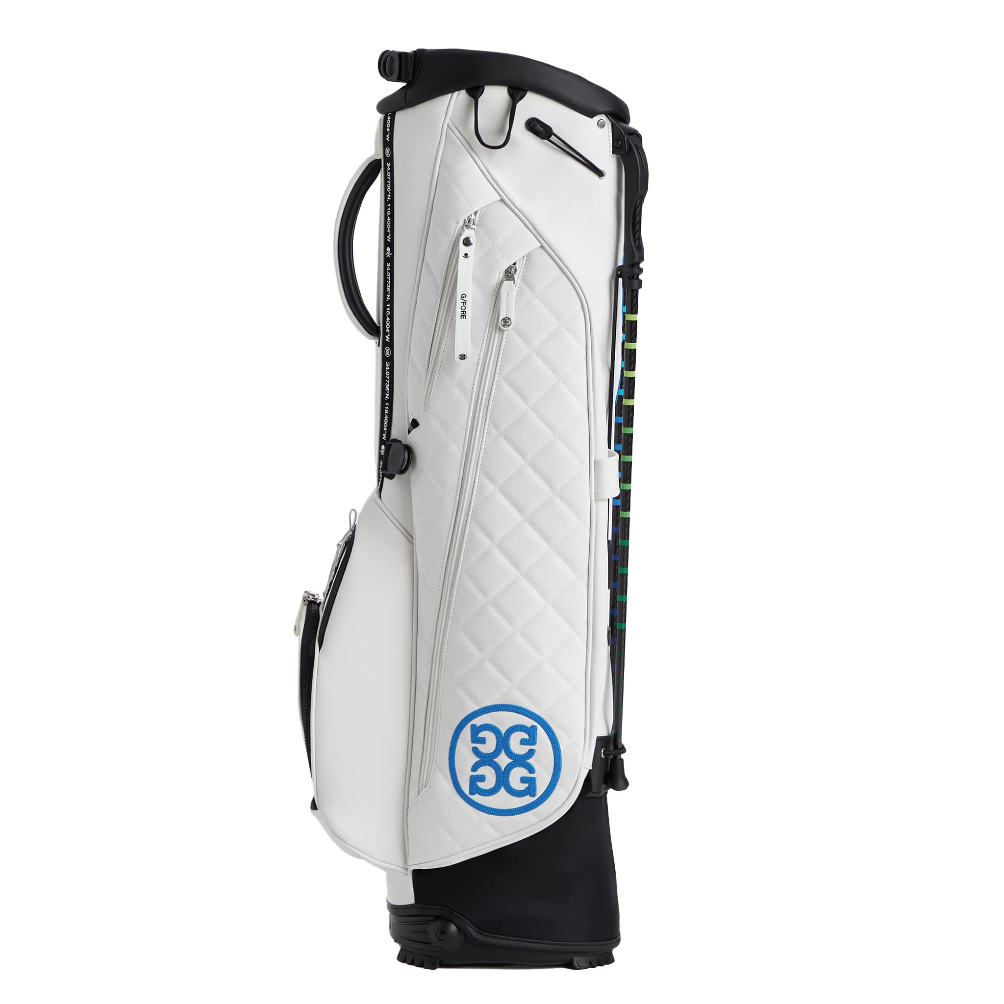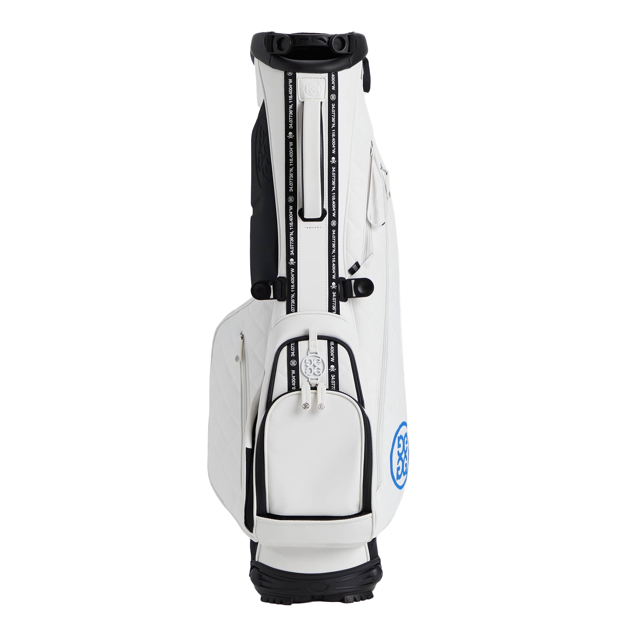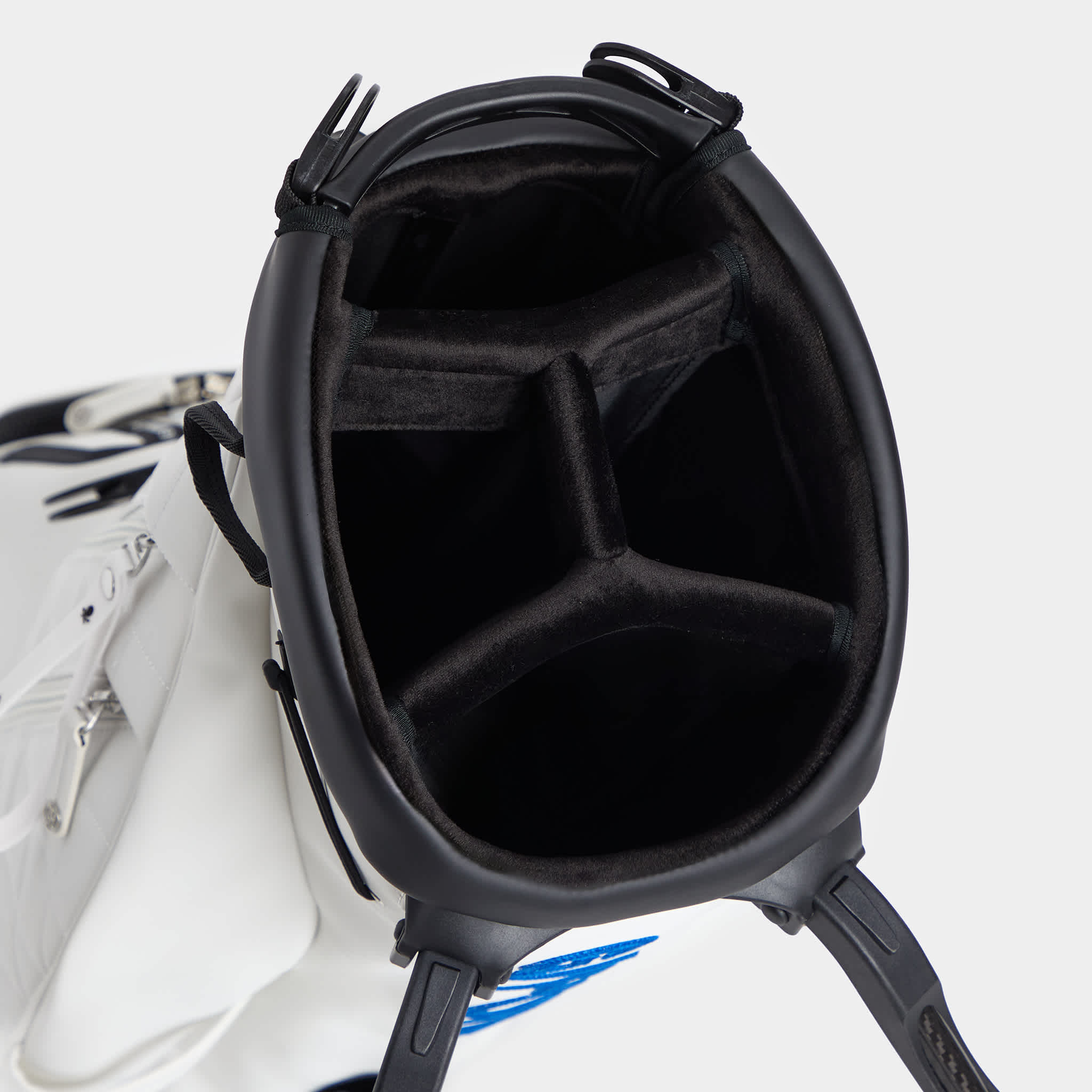 用高磨损的轻巧游览级PU制成 6个口袋,包括全长服装口袋,一个磁性球口袋和一个饮料袋 易于扩展的镀铬玻璃纤维腿 匹配的雨帽包括 7.5英寸x 10英寸开口,36英寸h x 12.5“ w x 12” d 氯丁橡胶壁板带有折纸徽标,以提供额外的舒适携带 带有符合人体工程学的双带,很容易将一个或两个肩膀的平衡携带转换为单个皮带