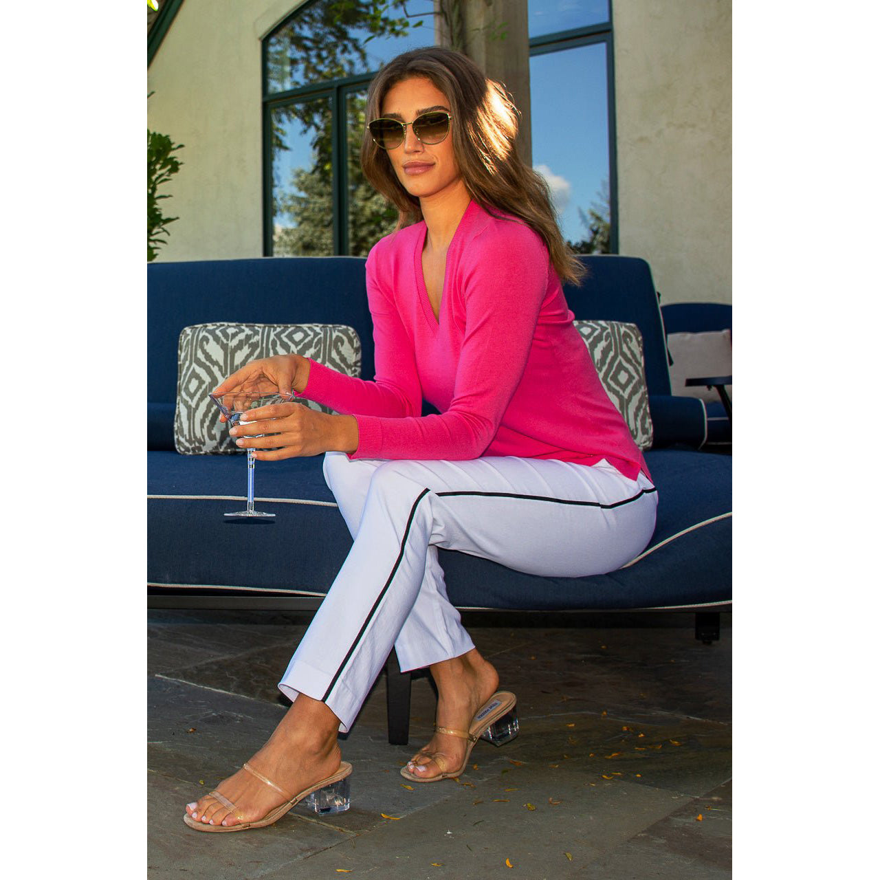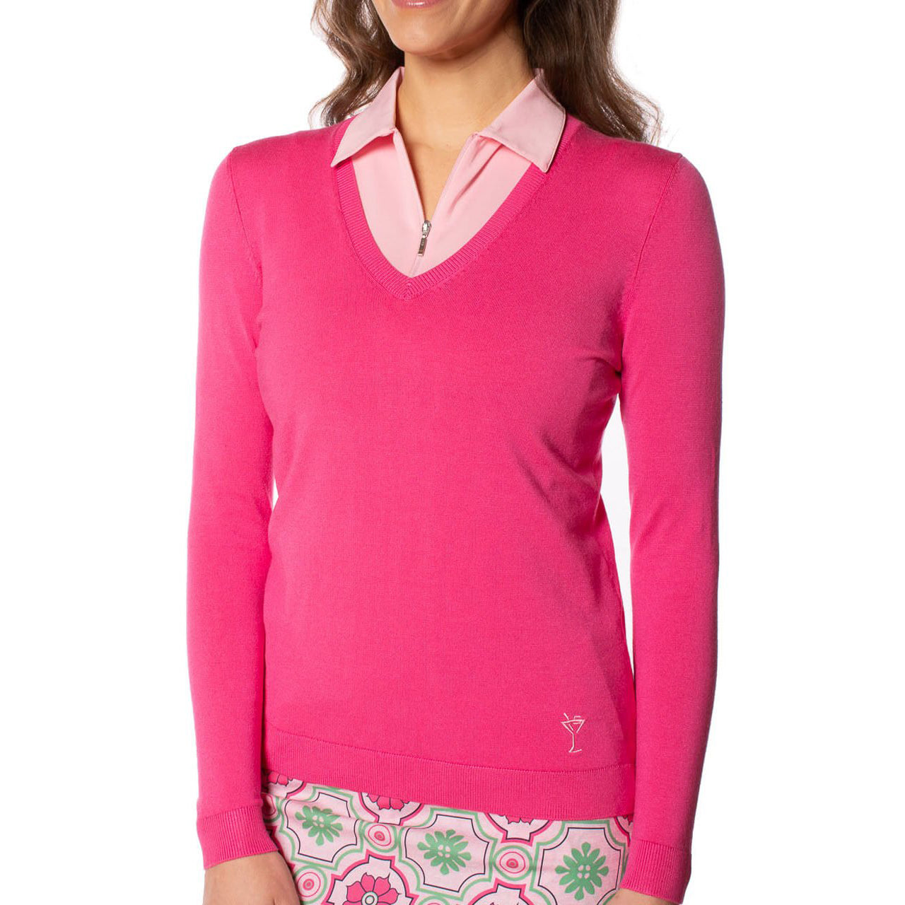 Golftini 女式弹力 V 领高尔夫毛衣 - 亮粉色