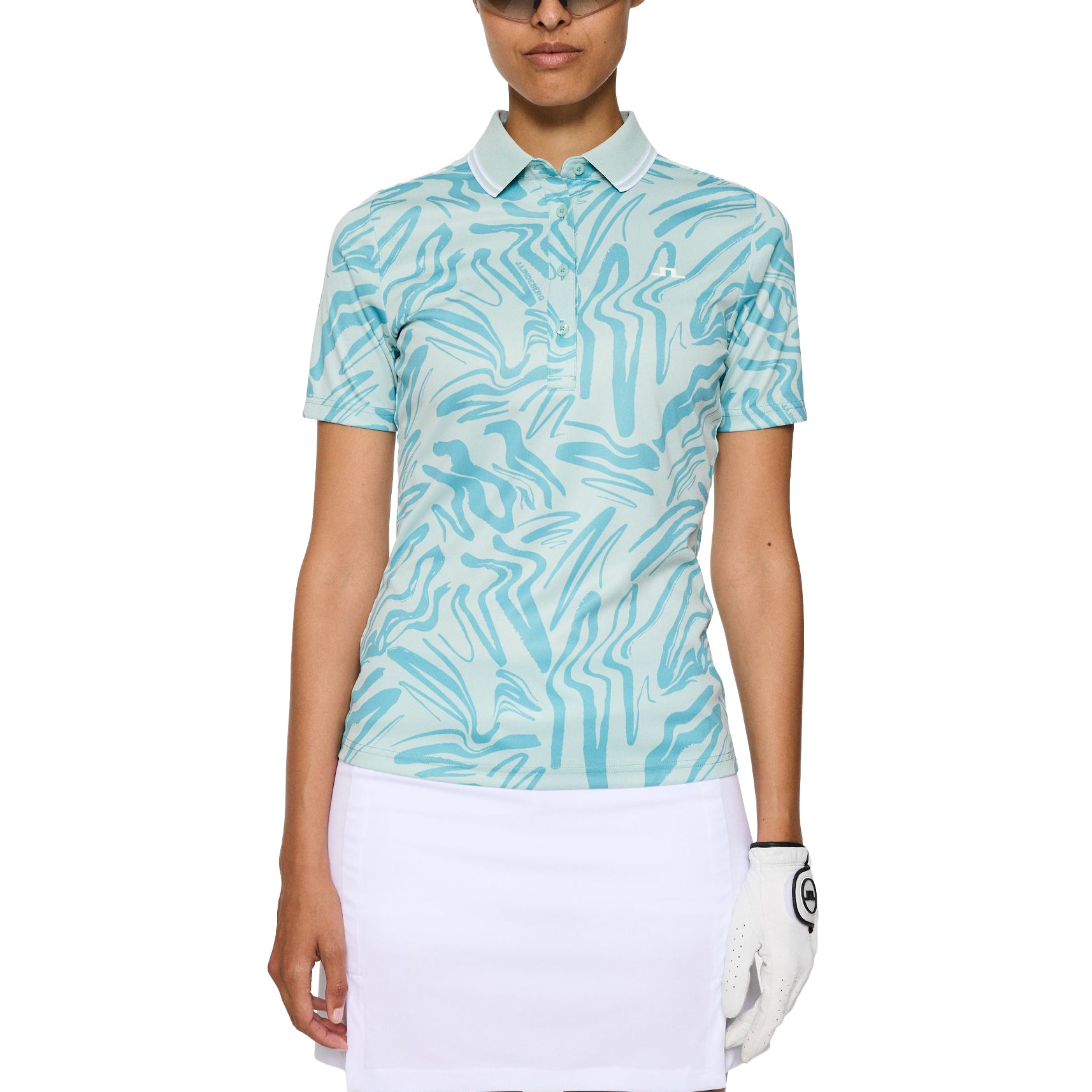 J.Lindeberg 女式 Georgia 印花 Polo 高尔夫衬衫 - Scribble JL 海军蓝