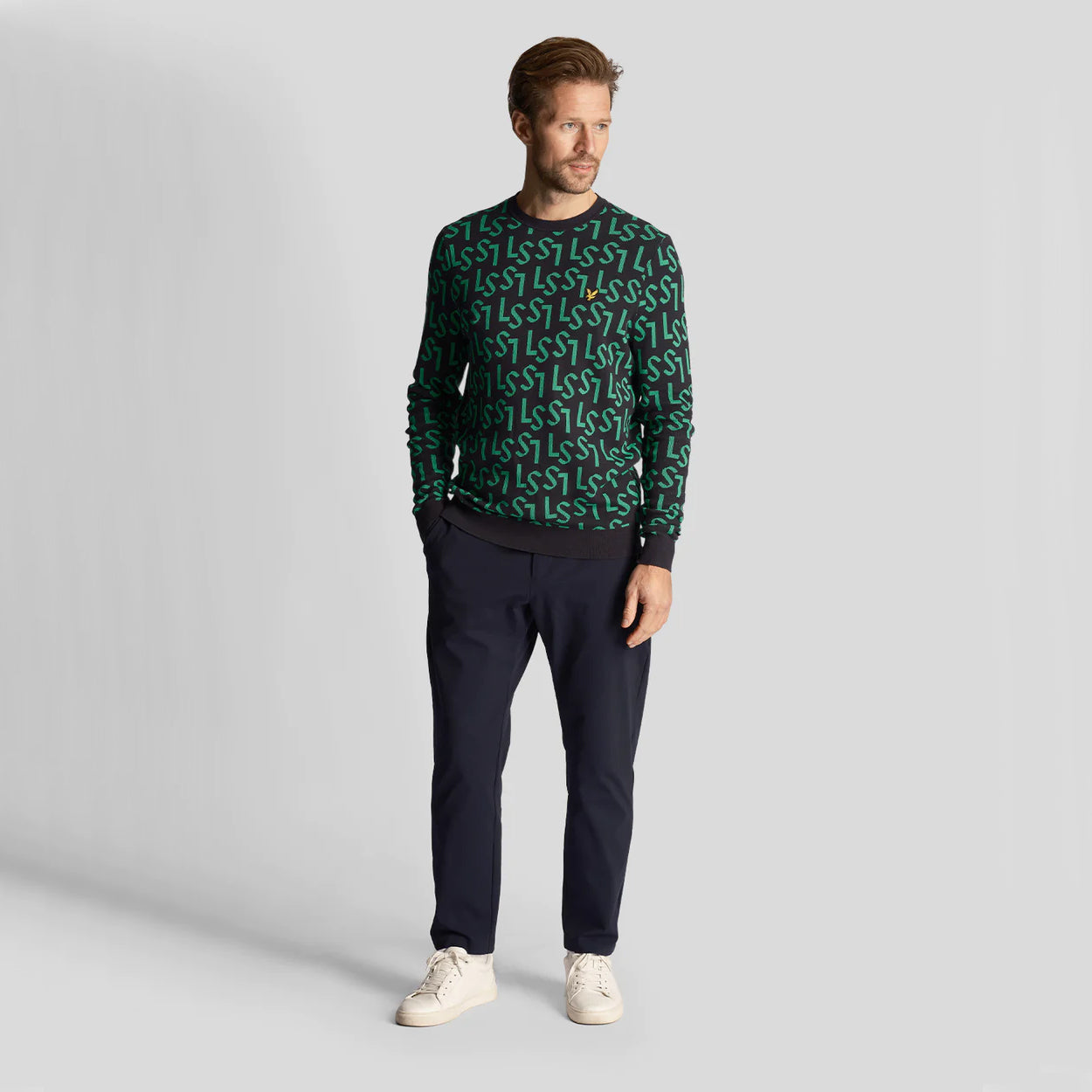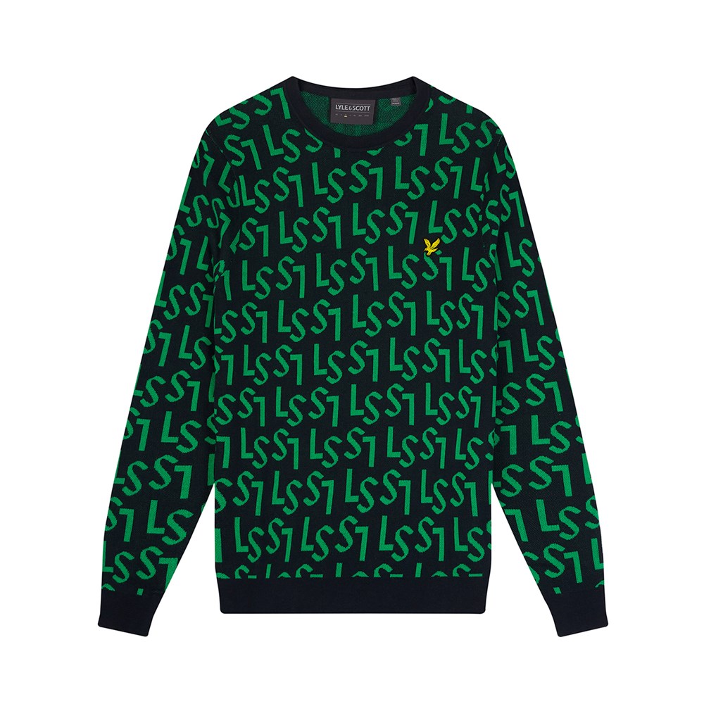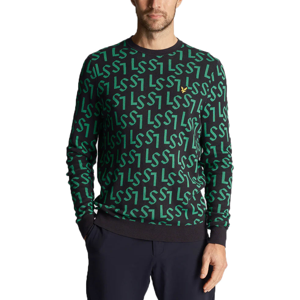 Lyle&Scott Monogram编织高尔夫船长脖子 - 黑暗海军