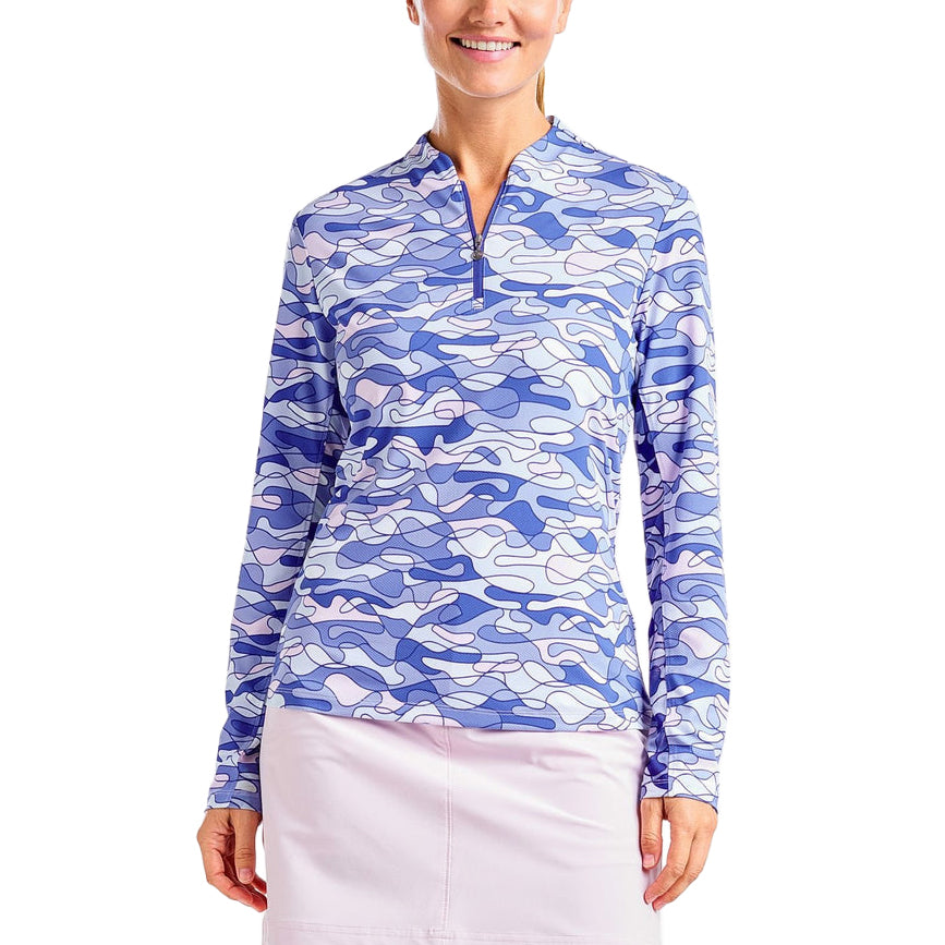 Nivo女子洛丽塔紫外线长袖模拟脖子高尔夫衬衫 - 钴