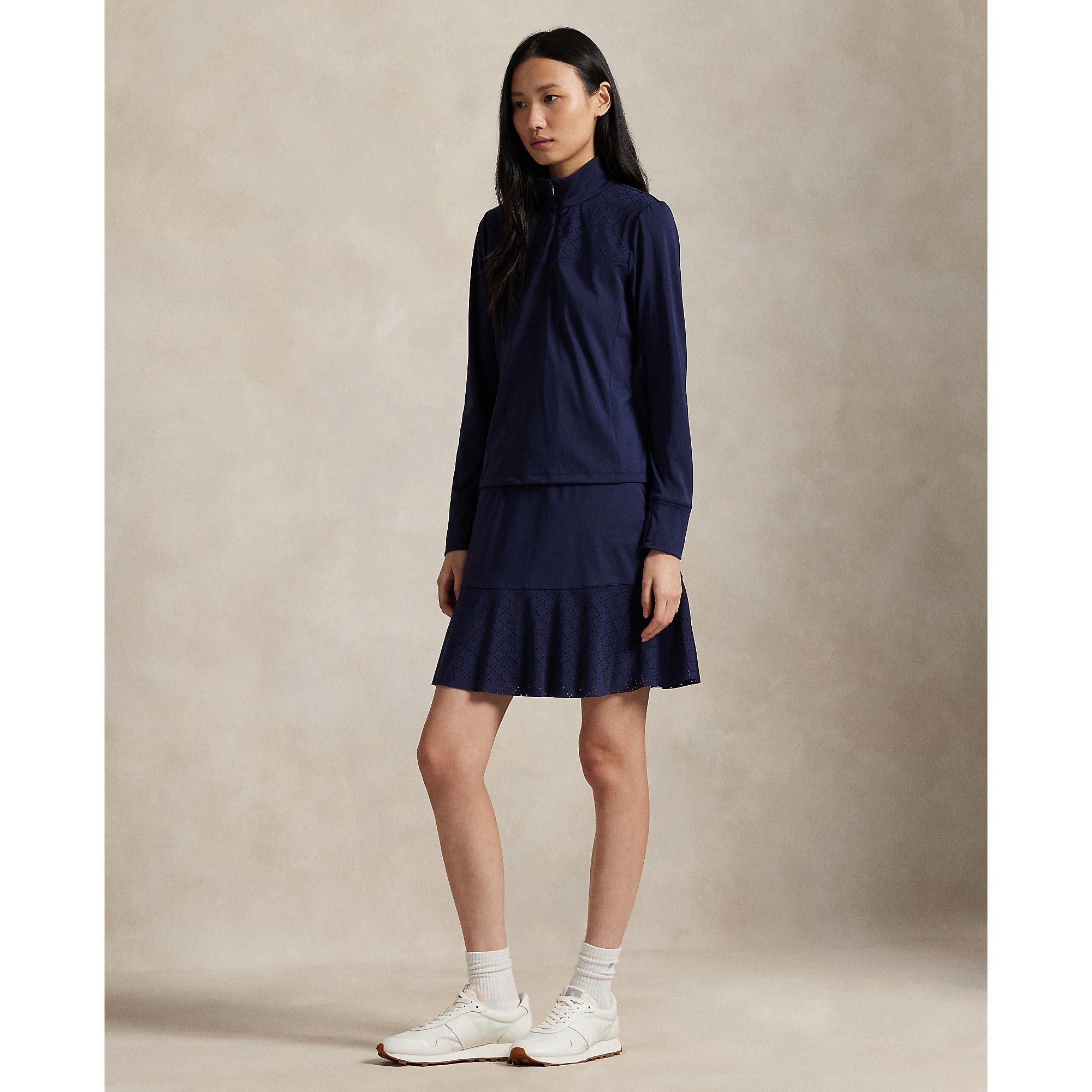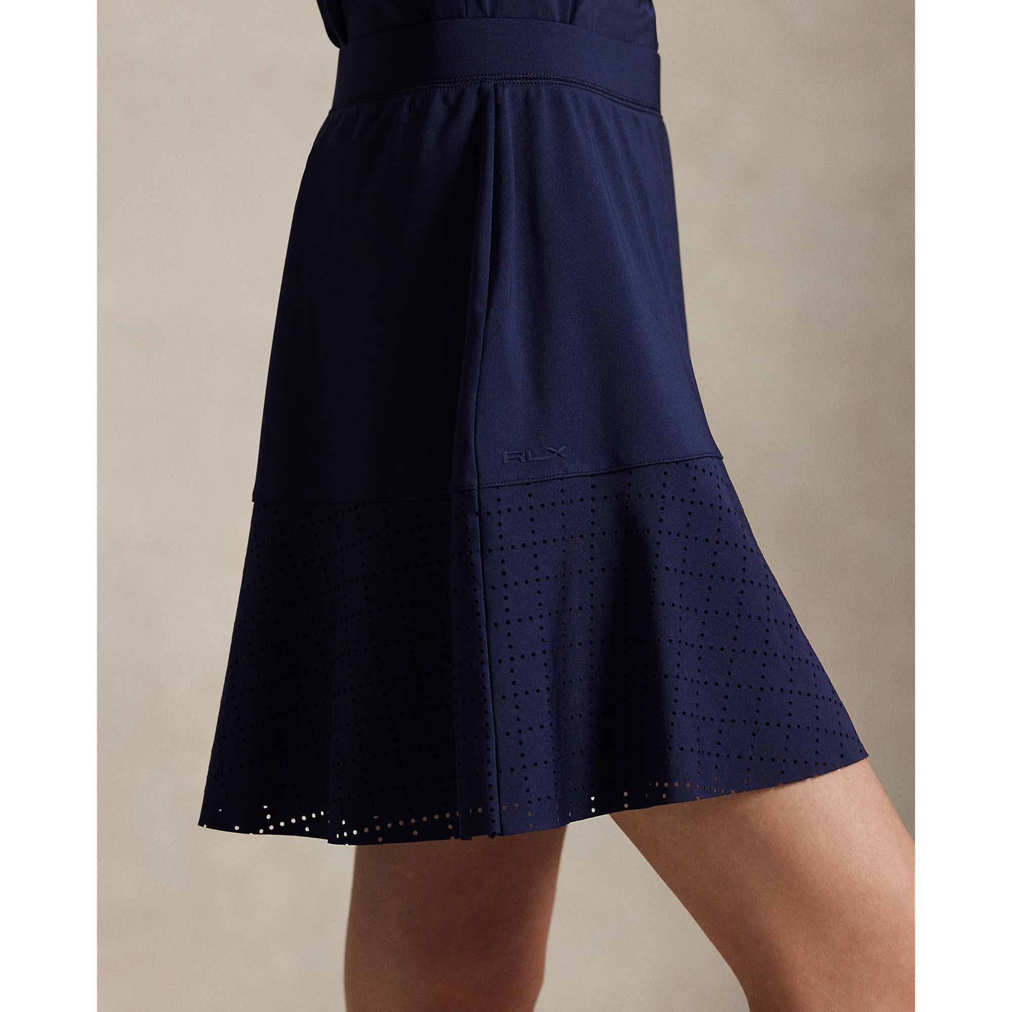 Sporty, Sleek, and Designed to Move The RLX Ralph Lauren Women’s Stretch Interlock A-Line Golf Skirt combines functional performance with refined style. Crafted from stretch interlock fabric with laser-cut eyelet panels, this skirt offers breathable comfort, freedom of movement, and a modern athletic silhouette.