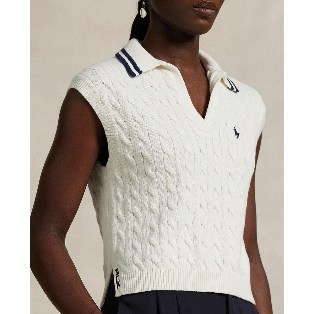 RLX Ralph Lauren女士Coolmax羊毛无袖套头衫 - 陶瓷白色
