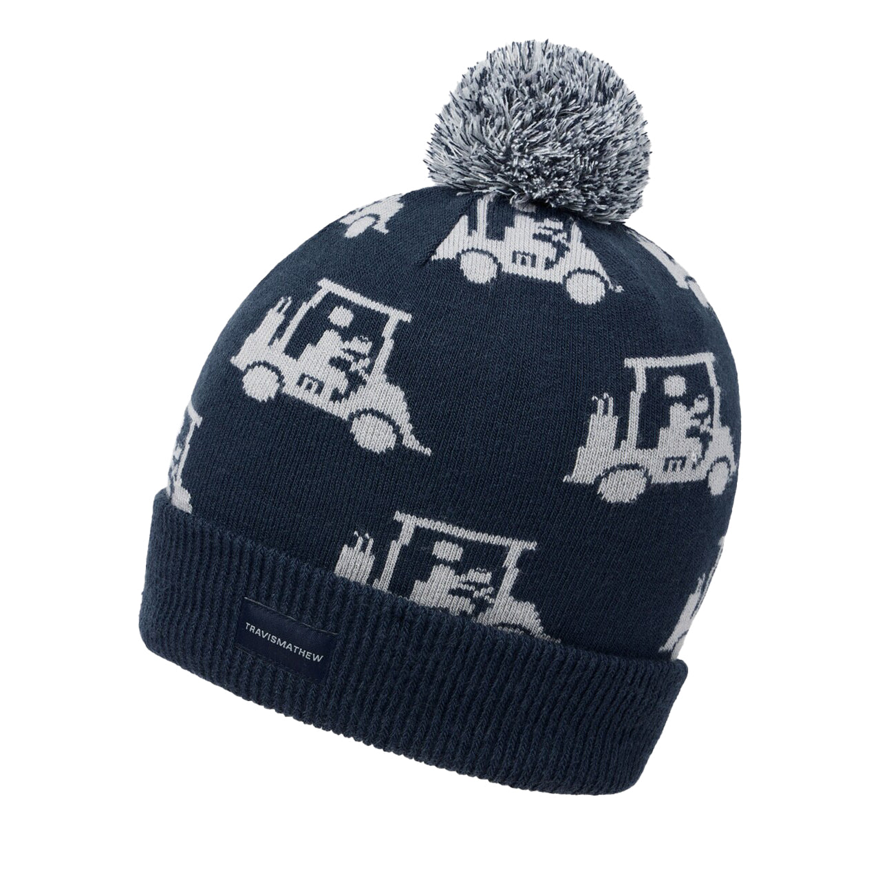 Cozy, Playful, and Unmistakably TravisMathew Stay warm and stylish with the MAPES Beanie. Crafted from soft woven fabric, it features an all-over print of our iconic golf cart graphic and a playful pom top, adding personality to every cold-weather look.
